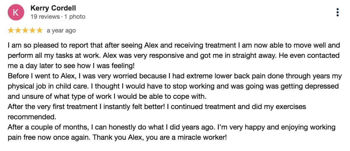Alex uses chiropractic manual therapy techniques to adjust the joints in your body and utilises a wide range of other techniques to improve muscle function, such as dry needling, electrotherapy, traction and active releases.