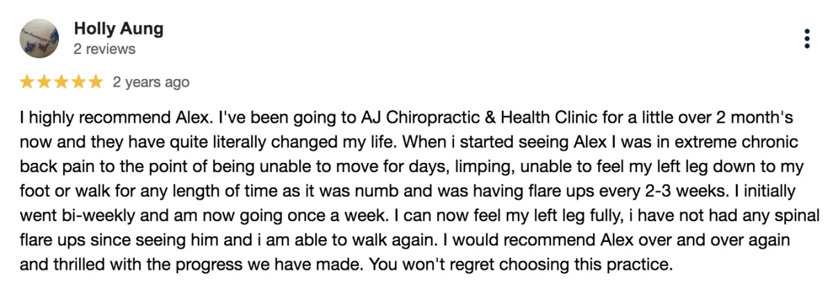 We will review your examination, and give you an individualised plan to prevent chronic pain and get you on your path to achieving your health goals.